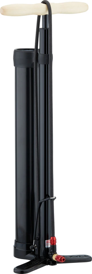 Especificaciones:Modelo:High PressurePresión máx.:15 bar (220 psi)Cabezal de bomba:Válvula Sclaverand/Presta, válvula Auto/SchraderDatos técnicos:Medidas:635 mmManómetro:arriba, digitalPuño:Mango en T de maderaTubo de bebida:135 cmMaterial Cilindro:AluminioMaterial Base:AceroCaracterísticas:bomba de suelo con un innovador diseño de cámara como alternativa al compresor de aire o a los cartuchos de CO2la cámara secundaria con aire comprimido se puede vaciar fácilmente mediante una palanca de pie para un llenado rápido y uniformeayuda a montar cubiertas Tubeless, adecuada para modelos de ruta y de MTB, también para cubiertas Plusse puede utilizar como bomba de pie convencional gracias al mecanismo de compensación de presiónmanómetro digital de alta precisión, que funciona con una pila de botón CR2032manguera trenzada extra larga, reforzada con nailon1 Accesorio de válvula Pro-Chuck con función de purga de aire ABS (Air Bleed System) y herramienta de válvula, reversible para compatibilidad AV y SVconstrucción duradera de acero y aluminio