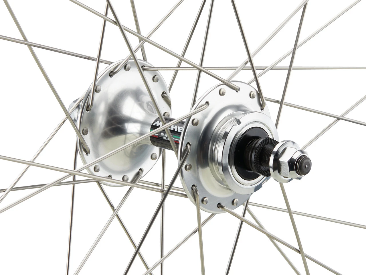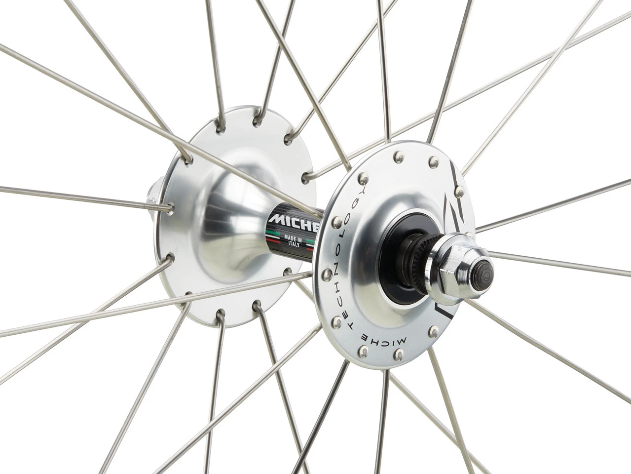 El Pistard de Miche es un juego de ruedas con cubierta de alambre exclusivamente para el ciclismo de pista. Dispone de llantas de aluminio de 28 mm de alto y 15 mm de ancho, 20 radios de acero inoxidable adelante y 28 atrás, y bujes con ejes roscados con bridas altas con rodamientos de baja fricción.