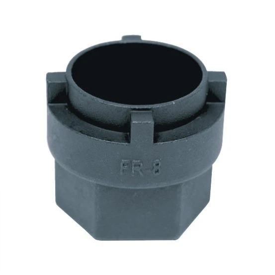 Extractor de coronas de acero endurecido con base sólida de 1″ para palancas de extracción o tornillo de banco. El diseño de paredes finas permite su uso sin necesidad de retirar antes el cono o la contratuerca. El FR-8 se utiliza para desmontar las ruedas libres de 4 ranuras de los bujes BMX «Flip-Flop» con rosca de 30×1 mm.