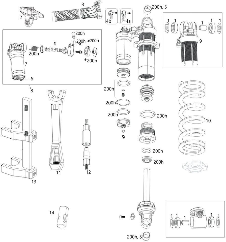 Kit de mantenimiento 200 horas/1 año para amortiguadores Super Deluxe Coil Remote (A1-A2, 2018-2020), con juntas de cabezal de sellado, junta de pistón, anillos de guía, juntas IFP, repuestos Remote