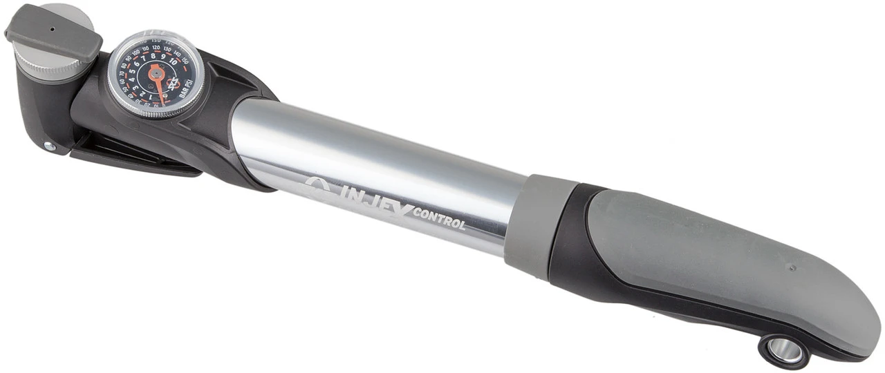 La Injex Control es la última bomba de la exitosa familia Injex. Está equipada con un pequeño manómetro redondo analógico en el extremo del tubo de compresión de aluminio de alta calidad. El cabezal de la bomba E.V.A. integrado se adapta a todo tipo de válvulas. La función telescópica y el mango plegable en T garantizan un bombeo óptimo y cómodo hasta 10 bar.