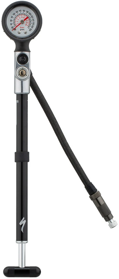 La bomba de amortiguador Air Tool de Specialized impresiona por su diseño compacto y su funcionamiento preciso. Ofrece una presión máxima de más de 20 bar, con un botón de liberación de presión para facilitar el ajuste fino. La válvula se puede desenroscar completamente, protegiéndose así de daños durante el transporte. Además, la bomba cuenta con una manguera insensible al aceite del amortiguador y un mango en T de fácil manejo.