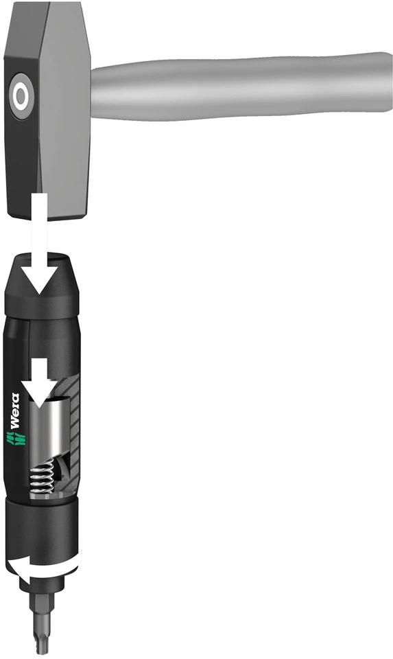 Para aflojar y apretar tornillos sin utilizar máquinas sólo con fuerza de impacto. Los atornilladores de impacto de Wera tienen un grado de eficacia especialmente alto gracias a su robusto diseño de doble curva. La fuerza de impacto se convierte en un movimiento de rotación. Ahorra el uso de equipos de aire comprimido. La robusta caja textil ofrece una opción de almacenamiento muy compacta para estas herramientas de alta calidad.